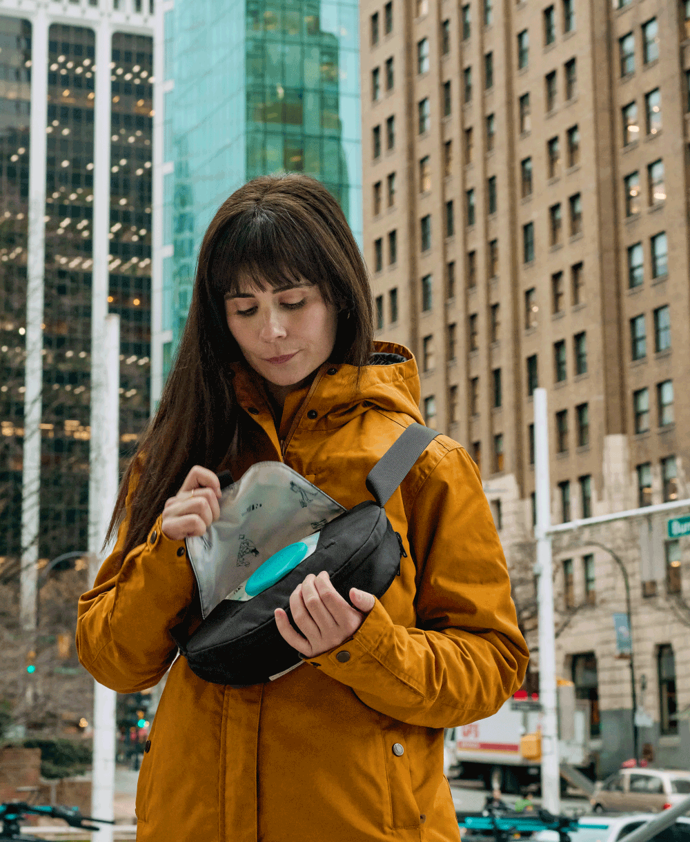 Whether you’re crammed inside an aircraft lavatory, the backseat of a car, or the corner of a public restroom -- changing a diaper in tight quarters and on-the-go is challenging. Wear the Sidekick to discreetly carry all your diaper changing essentials, keep your hands fully available to hold onto your little one, and grab exactly what you need to complete that diaper change ASAP.