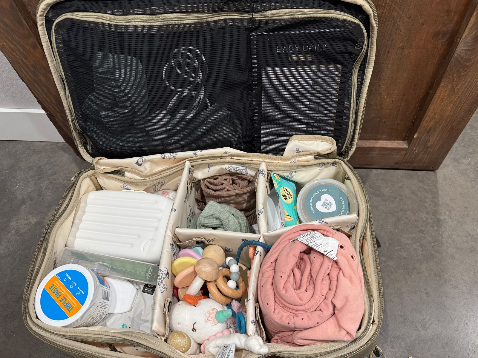 I purchased this bag after trying another brand that was great, but better for myself as a weekend bag. I’m currently using the hideaway duffel for packing my daughter’s necessities for the babysitter. I am able to pack so much, and not feel like the bag will rip at the seams. I can fit a couple changes of clothes, bibs, a can of formula, multiple bottles, regular food, diapers, wipes, changing pad, toys, books, sleep sack, medicine, toiletries, travel bottle washer, and more, and be able to easily find everything. I’m really looking forward to using this bag on our up coming travels. I think it will make life so much easier. I’m also more of a type A organized traveler, so this bag makes me happy!